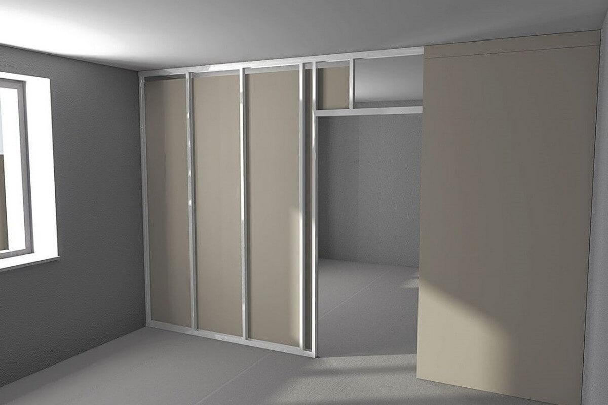 Рассчитать количество опорных полос. Например, при отделке потолка их будет 4, а при обработке вертикальной перегородки 3. В первом случае ширину гипсокартонной панели поделят не меньше, чем на 40 см, а во втором – на 60 см (при использовании стандартных полотен).